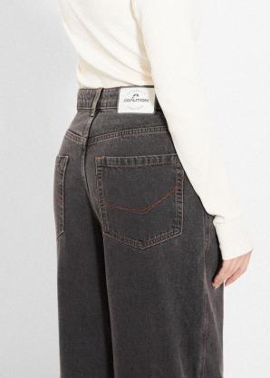 Džínové kalhoty z praného denimu se sedlem - vysoký pas, - široké nohavice zužující se ke kotníku, - vyšívaná etiketa, - vyrobené z bavlny s nádechem viskózy pro extra měkkost.