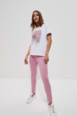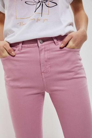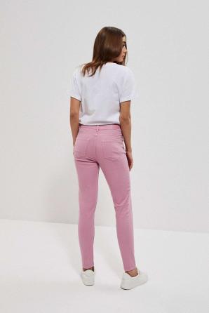 Univerzální bavlněné kalhoty v jemné barvě. Hladký materiál. Pružné, perfektně padnoucí na postavu. Vysoký pas, dlouhé, úzké nohavice. Zapínání na zip a knoflík. Poutka na pásek v pase. Skluzové kapsy vpředu i vzadu. Univerzální a pohodlné, ideální ke košili nebo klasickému tričku. Musíte je mít ve skříni.