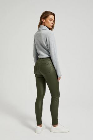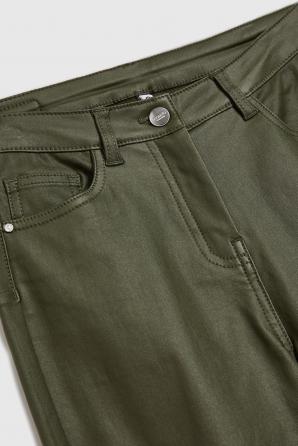Voskované olivové úzké kalhoty