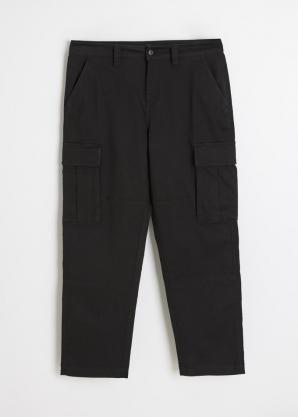 Kalhoty cargo s volným, regular střihem - funkční kapsy, - pohodlný pas, - dostupné v khaki a černé barvě.
