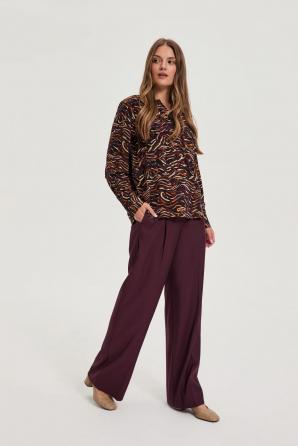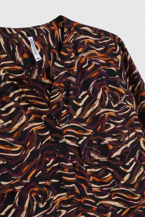 100% VISKÓZA. Tato černá dámská košile s unikátním vzorem zaujme svou originalitou. Dlouhé rukávy poskytují pohodlí v chladnějších dnech, zatímco výstřih do V decentně zvýrazňuje krk. Lehká, vzdušná tkanina s přídavkem viskózy zaručuje pohodlí a příjemný pocit na pokožce. Ideální volba pro obchodní schůzky, rodinné oslavy nebo večery v restauraci. Tato košile se perfektně hodí ke klasickým látkovým kalhotám, pouzdrové sukni nebo slim fit džínům. Je to perfektní způsob, jak vytvořit elegantní vzhled s nádechem sofistikovanosti.