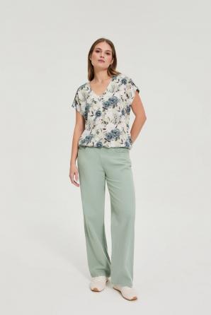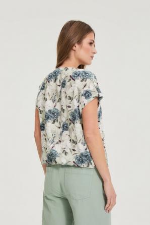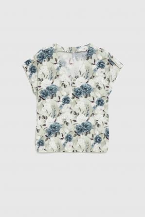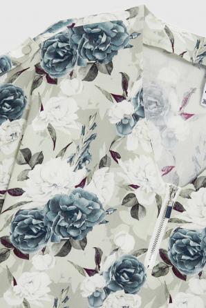 Olivová květinová viskózová košile