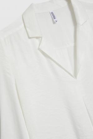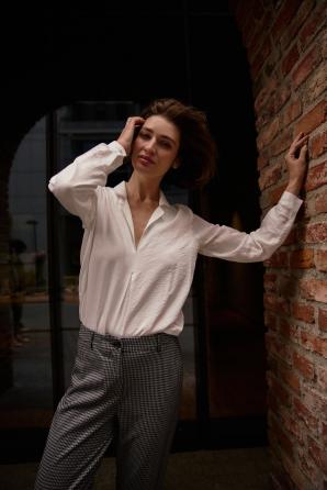 100% VISKÓZA Tato dámská košile v klasické bílé barvě zaujme svou všestranností a nadčasovým stylem. Její hladká textura a absence vzoru z ní činí perfektní volbu pro současné minimalistické trendy a zároveň umožňuje rozmanité módní outfity. Jemná, měkká viskózová tkanina decentně obepíná siluetu a zajišťuje celodenní pohodlí. Dlouhé rukávy a výstřih do V opticky zeštíhlují horní část těla a dodávají košili eleganci a lehkost. Je ideální volbou do kanceláře, na obchodní schůzku, rodinnou večeři nebo na výlet s přáteli. Perfektně se hodí k látkovým kalhotám, pouzdrové sukni a úzkým džínům nebo džínám mom fit. Vypadá skvěle pod sakem nebo kardiganem a vytváří formální i ležérní outfity.