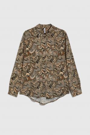 100% VISKÓZA Tato košile ve velbloudí barvě s motivem mandaly zaujme svým originálním designem, který zdůrazňuje individuální styl a dodává eleganci každému outfitu. Dlouhé rukávy a klasický límec zajišťují pohodlí a všestrannost, zatímco decentní knoflíky umožňují pohodlné nošení. Lehká viskóza činí látku příjemnou na dotek a prodyšnou, ideální pro celodenní nošení. Ideální pro obchodní schůzky, rodinné oslavy i každodenní práci.