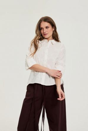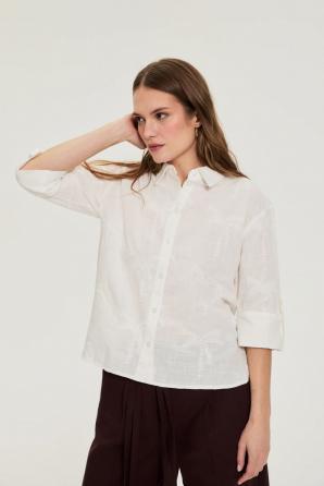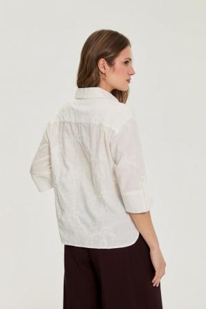 Bavlněná košile s výšivkou a s 3/4 rukávy, krémově bílá