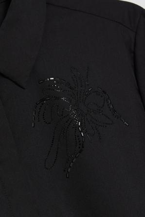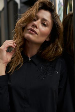 80% POLYESTER, 17% BAVLNA, 3% ELASTAN Tato černá dámská košile s originálním designem je ideální pro ty, kteří si cení jedinečného stylu a elegance. Dekorativní kamínky dodávají košili osobitý nádech, zatímco klasické skladání a zapínání na knoflíky zdůrazňují nadčasový charakter košile. Dlouhé rukávy a límec dokonale splňují současné trendy dámské módy. Lehká polyesterová tkanina zajišťuje pohodlí a snadnou údržbu. Tato košile je ideální pro formální schůzky, práci nebo večerní vycházku. Perfektně se hodí k látkovým kalhotám, pouzdrové sukni nebo klasickým džínům a vytváří tak všestranný vzhled. Je perfektní k saku nebo pod svetr a umožňuje vám vytvořit moderní obchodní nebo ležérní vzhled.