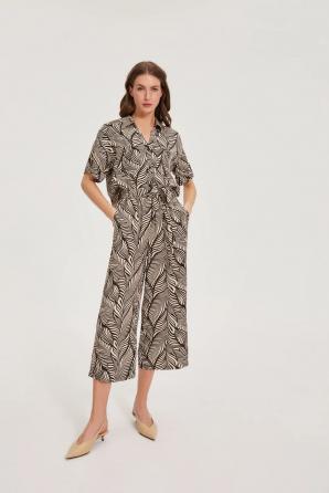 100% VISKÓZA Tato hnědá košile s květinovým vzorem je ideální pro ženy, které si každý den cení stylu a pohodlí. Je vyrobena z prodyšné viskózy a zajišťuje pohodlí i v těch nejaktivnějších dnech. Volný střih s krátkými, ohrnutými rukávy a ženským výstřihem do V s klasickým límcem vytváří lehkou a přirozenou siluetu. Praktické kapsy, knoflíky po celé délce a decentní nárameníky a sklady dodávají košili charakter a umožňují snadné sladění s mnoha outfity. Tato košile je ideální do práce, na setkání s přáteli, na procházku nebo na večerní zábavu. Její všestranný, ležérní styl vám umožní zkombinovat ji s vašimi oblíbenými džínami, látkovými kalhotami nebo sukní. Pro elegantnější vzhled stačí doplnit jednoduchým sakem. Tato hnědá košile s květinovým vzorem v sobě spojuje pohodlí, módní střih a ženský styl, což z ní činí nezbytný prvek každého moderního šatníku.