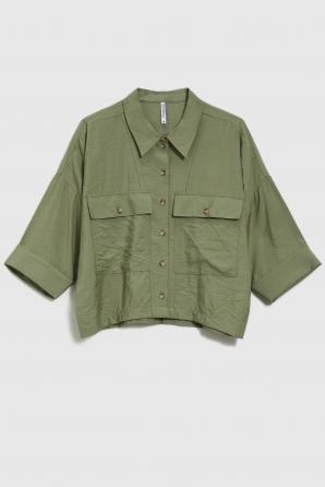 Krátká olivová viskózová košile