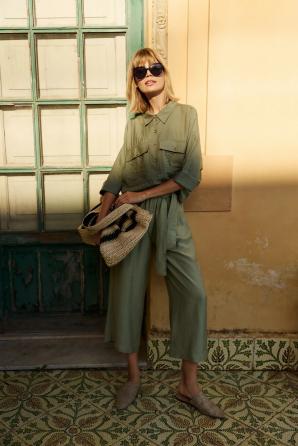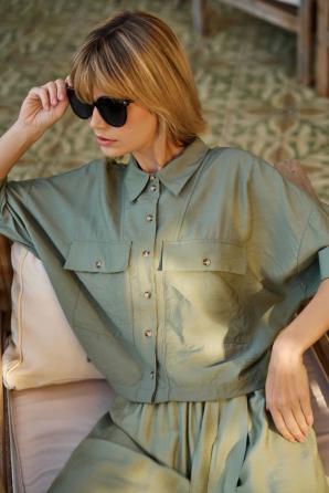 Krátká olivová viskózová košile