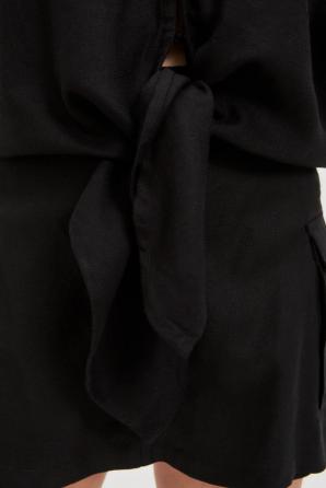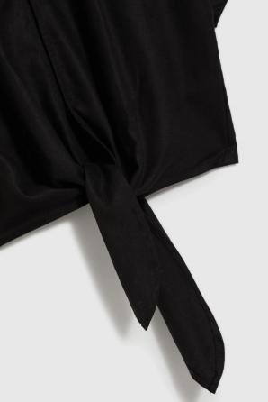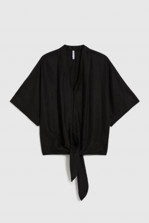 75% VISKÓZA, 25% LEN Dámská košile v černé barvě je perfektní volbou pro každou stylovou ženu. Vyrobeno z lehké a příjemné viskózy, která zaručuje pohodlné nošení. Nadměrný model s vázáním vpředu, knoflíky a výstřihem do V vypadá extrémně módně. Krátké rukávy a rozšířený střih dodávají lehkost a volnost pohybu. Tato elegantní košile je ideální na večerní vycházky, schůzky s přáteli nebo i do kanceláře. Perfektně se hodí k přiléhavým látkovým kalhotám nebo džínům, ale i ke kožené sukni. Tohle je nutnost v každé dámské sbírce!