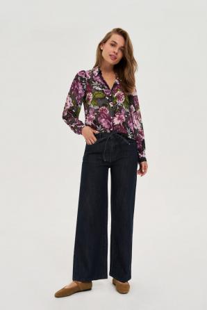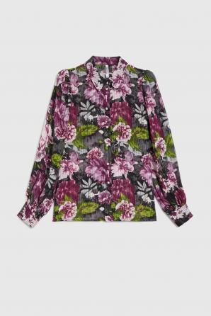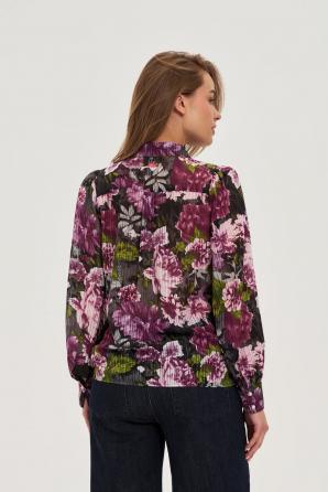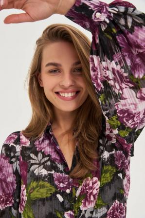 Černá košile s květovaným vzorem a nabíranými rukávy
