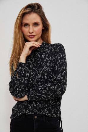Jemný potisk ve tvaru obličeje v celé bílé barvě. Klasický límeček košile.