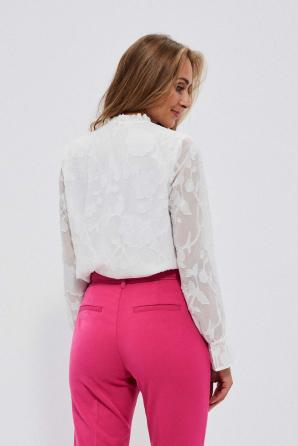 Elegantní bílá košile s prolamovanými rukávy. Vyrobeno z průhledné látky, celé pokryté velkými bílými květy.