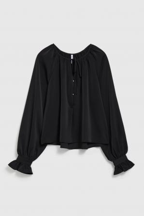 košile s nabíranými rukávy a vázaným výstřihem