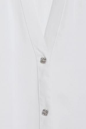100% POLYESTER Tato krémová dámská košile v ecru odstínu je ideální pro ty, kteří si cení elegance a všestrannosti. Hladká, nevzorovaná látka jí dodává klasický charakter, zatímco decentní výstřih do V krásně zdůrazňuje krk. Tříčtvrteční rukávy jsou praktickým řešením, ideálním pro teplejší i chladnější dny. Zapínání na knoflíky zajišťuje pohodlí a umožňuje různé stylingové možnosti. Lehká, příjemná látka s nádechem polyesteru zaručuje celodenní pohodlí a snadnou údržbu. Tato krémová košile je ideální pro obchodní schůzku, rodinnou večeři nebo výlet s přáteli. Dokonale doplní kancelářský outfit s klasickými látkovými kalhotami a dobře se hodí i k pouzdrové sukni nebo džínům. Všestranný střih umožňuje různé módní outfity – elegantní i ležérní.