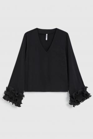 Černá košile s volánky na rukávech