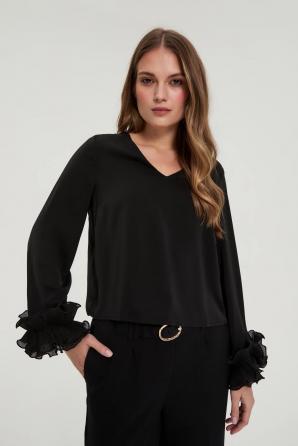 Černá košile s volánky na rukávech