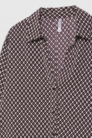 100% POLYESTER. Tato vínová košile s geometrickým vzorem přitahuje pozornost svým originálním designem a elegantní barvou. Dlouhý rukáv a klasický límec zdůrazňují nadčasový styl, zatímco pohodlné zapínání na knoflíky umožňuje snadné nastavení výstřihu do V. Lehký polyesterový materiál zajišťuje pohodlí a snadnou údržbu a zaručuje svěží vzhled po celý den. Je ideální volbou pro obchodní schůzky, rodinné setkání nebo večerní setkání v restauraci. Hodí se k látkovým kalhotám, elegantní pouzdrové sukni nebo klasickým džínům.