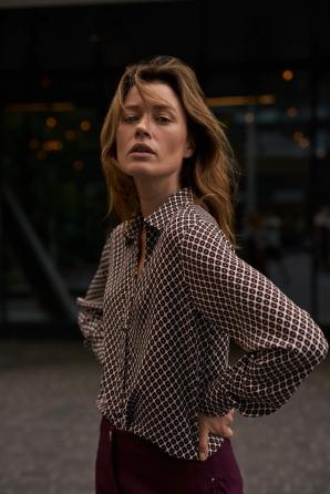 100% POLYESTER. Tato vínová košile s geometrickým vzorem přitahuje pozornost svým originálním designem a elegantní barvou. Dlouhý rukáv a klasický límec zdůrazňují nadčasový styl, zatímco pohodlné zapínání na knoflíky umožňuje snadné nastavení výstřihu do V. Lehký polyesterový materiál zajišťuje pohodlí a snadnou údržbu a zaručuje svěží vzhled po celý den. Je ideální volbou pro obchodní schůzky, rodinné setkání nebo večerní setkání v restauraci. Hodí se k látkovým kalhotám, elegantní pouzdrové sukni nebo klasickým džínům.