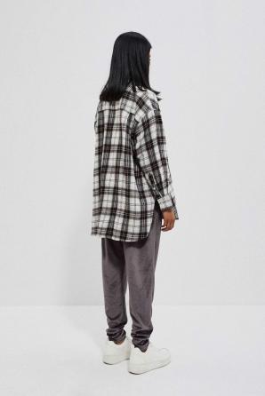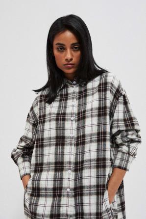 Rozparky na spodních okrajích a bocích. Spodní část košile je mírně zaoblená. Dominantní barvy - ecru a béžová.