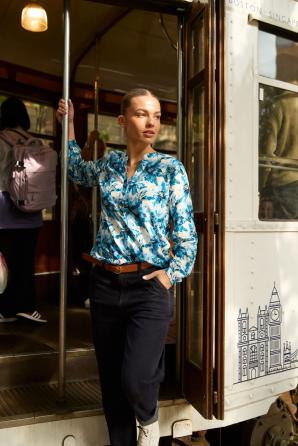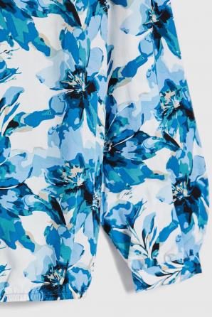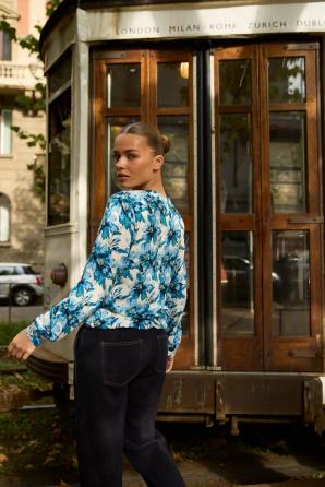 100% VISKÓZA. Tato modrá košile s květinovým, botanickým vzorem je poutavá a každý den dodává energii. Vyrobena z měkké viskózy, je hebká na kůži a poskytuje celodenní pohodlí. Dlouhé rukávy s elegantními manžetami a výstřih do V zakončený stojáčkem zdůrazňují ženský charakter, zatímco ozdobné knoflíky dodávají nádech lehkosti. Tento kousek kombinuje stylový vzhled s každodenní volností pohybu. Tato košile je ideální do práce, na schůzky s přáteli i na procházky po městě. Skvěle vypadá s klasickými džínami, elegantními kalhotami nebo midi sukní. Lze ji nosit samostatně nebo pod sakem, čímž vytvoříte jedinečný, ležérní vzhled s nádechem elegance. Je to všestranná volba pro ženy, které se rády cítí pohodlně a stylově bez ohledu na příležitost.