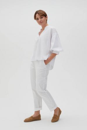 80% POLYESTER, 17% BAVLNA, 3% ELASTAN Bílá dámská košile je perfektní volbou pro každou ženu, která si cení elegance a pohodlí. Vyrobeno z hladkého polyesteru, dokonale se přizpůsobí siluetě a zdůrazní přednosti postavy. Knoflíky, volánky a nabírky dodávají košili jedinečný charakter a krátké rukávy z ní dělají ideální volbu do teplých dnů. Nabírané manžety dodávají košili lehkost a jemnost a límec s výstřihem do V dodává celému vzhledu šik a eleganci. Tato košile je ideální pro mnoho různých příležitostí, formálních i neformálních. Lze jej kombinovat s elegantními kalhotami a vysokými podpatky, stejně jako s džínami a teniskami. Díky svému univerzálnímu designu se bude hodit k mnoha šatníkům a dodá vašemu stylu eleganci a třídu.