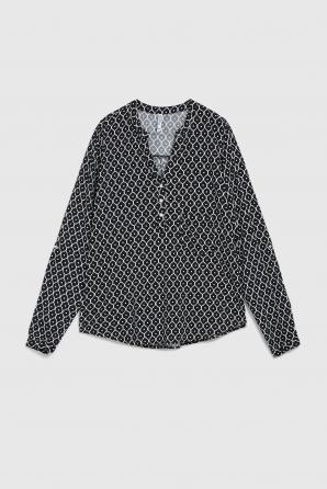 Viskózová košile bez límečku, černá