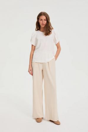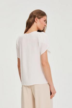 100% POLYESTER Tato ecru barva košile je ideální pro ženy, které si cení decentní elegance a každodenního pohodlí. Jemná tkanina ze směsi polyesteru obepíná pokožku a zajišťuje pohodlí i během náročného dne. Hladká, nevzorovaná textura zdůrazňuje její všestranný charakter, zatímco krátké nabrané a překřížené rukávy dodávají košili ženský a moderní nádech. Střih bez límce dodává košili lehký a svěží vzhled, který doplňuje minimalistické i výraznější outfity. Je ideální volbou do práce, na schůzky s přáteli nebo na svižné procházky městem. Perfektně se hodí k látkovým kalhotám, klasickým džínům nebo rovné sukni. Hodí se dobře pod sako nebo samostatně a dodává jí ležérní, ale zároveň elegantní nádech.