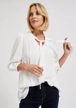 BÍLÁ KOŠILE NA KNOFLÍKY SE ZAVAZOVANÝM VÝSTŘIHEM