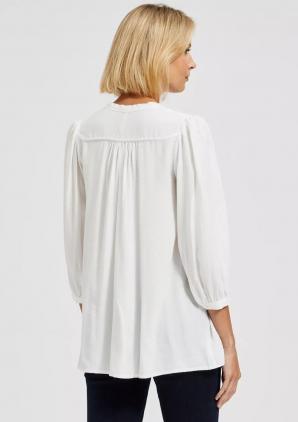 100% VISKÓZA Bílá košile je perfektní volbou pro ženy, které si cení pohodlí a svobody při nošení. Vyrobeno z vysoce kvalitní viskózy, zajišťující měkkost a jemnost na dotek. Její oversize střih jí dodává volný a ležérní charakter a zároveň se velmi pohodlně nosí. 7/8 rukávy s obláčky a manžetami dodávají eleganci a ženskost. Navíc nabírání na manžetě a zavazování u výstřihu mu dodávají jedinečný charakter. Zapínání na knoflíky usnadňuje oblékání a svlékání košile. Košile bude perfektní volbou pro mnoho různých příležitostí. Můžete jej nosit na obchodní schůzky, rande, ale i běžné schůzky s přáteli. Hodí se jak ke kalhotám, tak k sukni, díky čemuž je velmi univerzální a snadno se hodí k různým stylům. Můžete ho spárovat s džínami a teniskami pro ležérní vzhled, nebo ho nosit se sukní a podpatky pro přidání elegance.