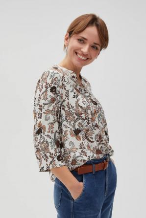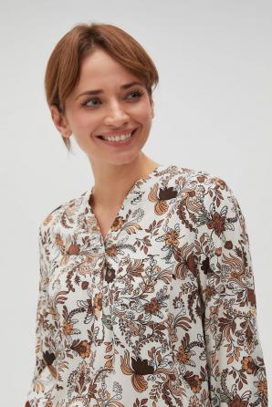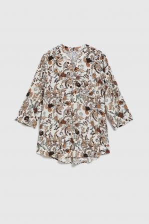 100% VISKÓZA Béžová dámská košile z viskózy. Má praktické kapsy a ohrnuté rukávy s knoflíky, které dodávají eleganci. Stojáček a slza dodávají košili jedinečný charakter. Dlouhé rukávy zajistí pohodlí v chladnějších dnech. Košile je ideální pro mnoho příležitostí, jak na formální schůzky, tak na každodenní nošení. Skvěle se hodí k sukni, kalhotám i šortkám a vytváří stylový a ženský outfit. Díky svému univerzálnímu designu bude perfektním doplňkem vašeho šatníku.