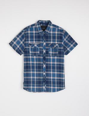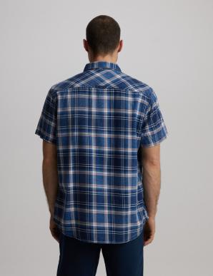 Pánská bavlněná kostkovaná košile s vintage sepraným vzorem - volný střih, - s náprsními kapsami, - krátké rukávy, - dostupná v modro-tmavě modré, tmavě červené a tmavě žluté barvě, - vyrobeno ze 100% bavlny.