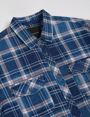 Kostkovaná košile s efektem praní v barvách tmavě modrá a světle modrá