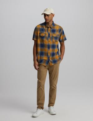 Pánská bavlněná kostkovaná košile s vintage sepraným vzorem - volný střih, - s náprsními kapsami, - krátké rukávy, - dostupná v modro-tmavě modré, tmavě červené a tmavě žluté barvě, - vyrobeno ze 100% bavlny.