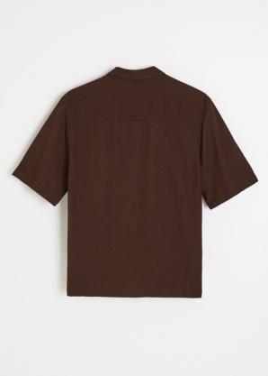Hnědá lněná košile s krátkým rukávem