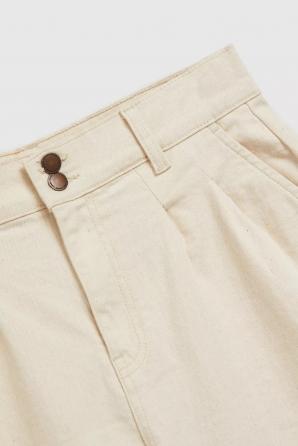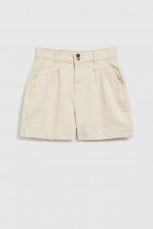 98% BAVLNA, 2% ELASTAN Dámské kraťasy béžové barvy jsou perfektní volbou na léto. Vyrobeno z vysoce kvalitní bavlny, jednobarevné, bez vzoru, se záševky a zapínáním na zip a knoflík. Díky střihu sahajícímu těsně nad kolena zdůrazňují přednosti postavy a vysoký pas opticky prodlužuje nohy. Jsou ideální jak pro každodenní nošení, tak i na pláž. Tyto béžové kraťasy budou ideální na letní procházky, setkání s přáteli nebo na výlet na pláž. Mohou být kombinovány s lehkým topem, oversized tričkem nebo dokonce s elegantní halenkou. Hodí se k plochým sandálům, espadrilkám nebo teniskám. Díky univerzálnímu charakteru s ním můžete vytvořit mnoho různých stylů.