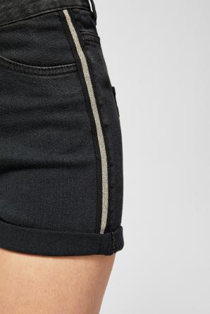 Dámské jeans šortky s pruhy po stranách. Krátké nohavičky se záhyby. Kapsy na přední a zadní straně. Velice pohodlné a vhodné k mnoha stylizacím :-)