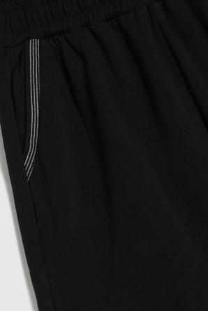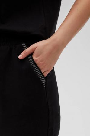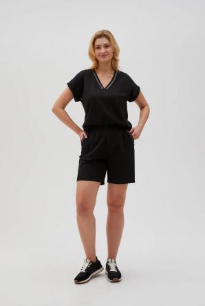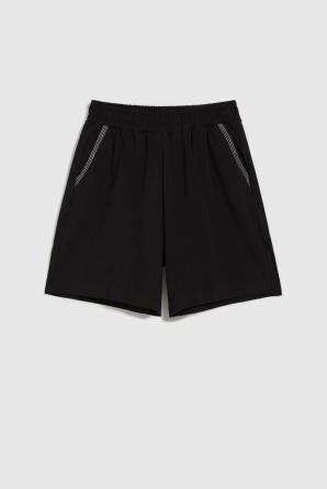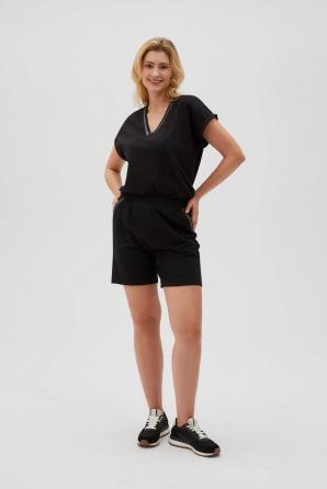 95% BAVLNA, 5% ELASTAN Černé kraťasy bez vzoru jsou perfektní volbou pro každou ženu. Jsou vyrobeny z příjemné bavlny na dotek, která zajistí pohodlné nošení. Elastický pas se přizpůsobí postavě a praktické kapsy dodávají funkčnost. Díky délce po kolena jsou vhodné jak pro každodenní nošení, tak i na pláž. Vysoký pas tvaruje pas a guma zvyšuje pohodlí při nošení. Vhodné na letní dny, ale i na neformální výlety. Budou se perfektně hodit k lehkým halenkám, topům nebo sandálům.