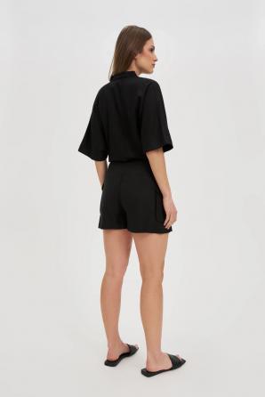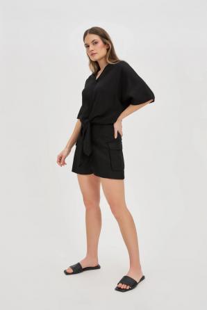 Modelka na obrázku: výška - 173 cm, rozměry 82/63/92, velikost v Moodo - horní část - XS, spodní část - M