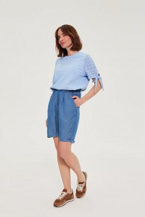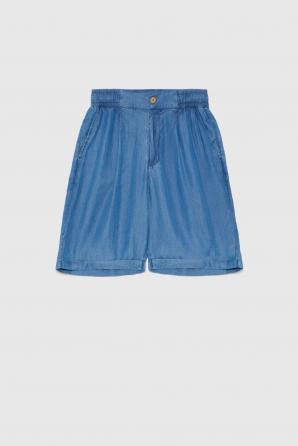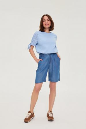 100% LYOCELL Dámské lyocellové kraťasy v klasické modré barvě jsou ideální pro ženy, které si každý den cení pohodlí a volnosti pohybu. Měkká, příjemná tkanina s přídavkem lyocellu zajišťuje prodyšnost a hebkost, zatímco elastický pas a vysoký střih lichotí siluetě a přizpůsobí se různým tvarům. Záševky, ohrnuté nohavice do poloviny stehen a praktické kapsy kombinují ženský styl s každodenním pohodlím. Zapínání na zip a knoflík zajišťuje snadné oblékání a přiléhavé nošení. Tyto kraťasy jsou ideální na procházku po městě, víkendový pobyt u vody nebo i do práce v letní den. Jednoduše je zkombinujte s lehkým tričkem, bavlněným tričkem, volným sakem nebo sportovní mikinou – každý outfit získá módní a ležérní nádech. Díky všestrannému designu se tyto dámské kraťasy hodí jak k sandálům, tak k teniskám. Jsou spolehlivou volbou pro ženy, které si ve svém každodenním šatníku cení stylové jednoduchosti a praktických řešení.