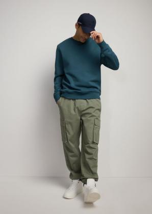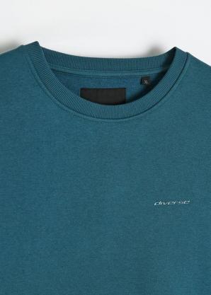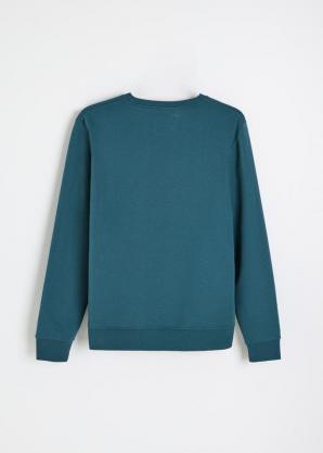 Pánská jednobarevná bavlněná mikina v petrolejové barvě