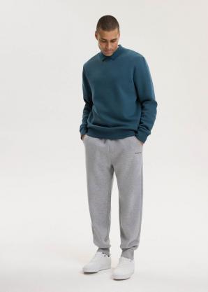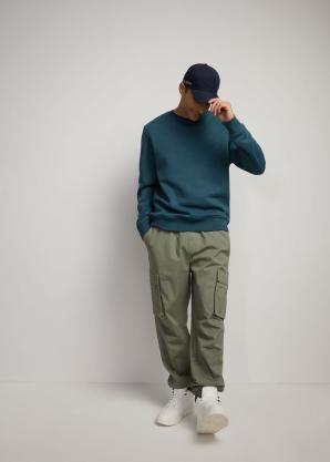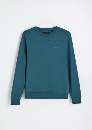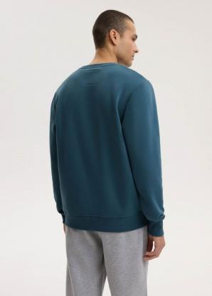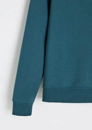 Pánská jednobarevná bavlněná mikina v petrolejové barvě