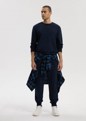 Pánská jednobarevná bavlněná mikina v tmavě modré barvě