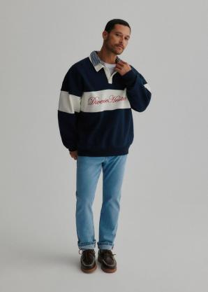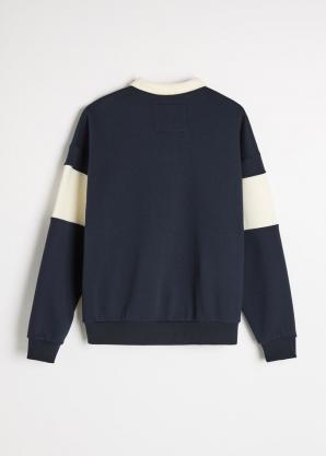 Vysoce kvalitní bavlněná tkanina, žebrované manžety a lem, kontrastní límec, klasický design a výšivka na přední straně. Tato mikina je ideální pro každodenní nošení i ležérní outfity.