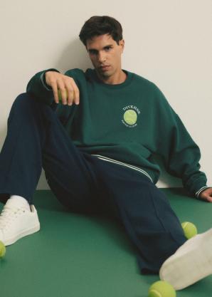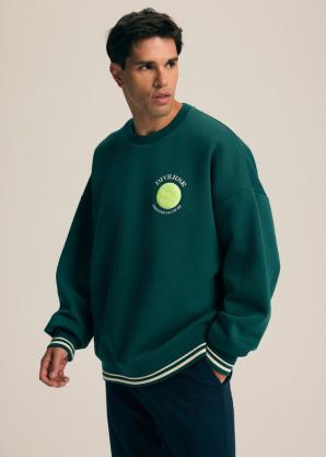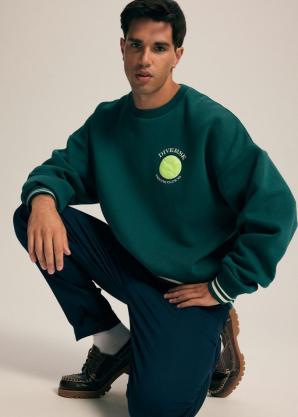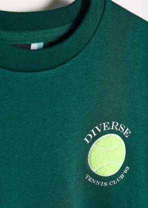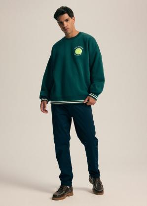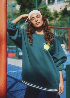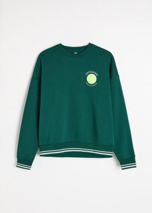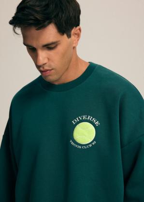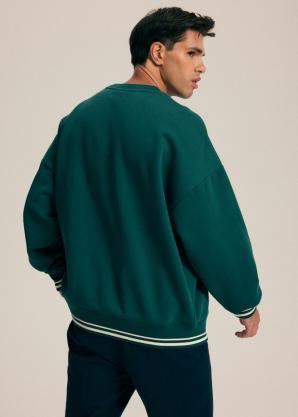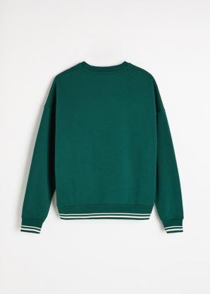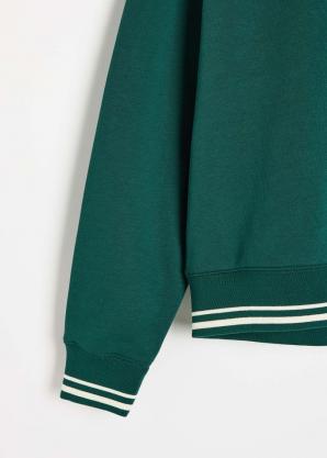 Vyrobeno z měkkého, příjemného úpletu v zářivě zelené barvě s originální výšivkou a žebrovanými manžetami s kontrastními pruhy na rukávech a lemu. Módní volba pro milovníky sportovního stylu a každodenního pohodlí.