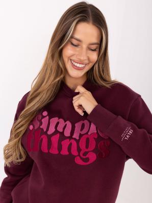Vínová zateplená mikina s výšivkou