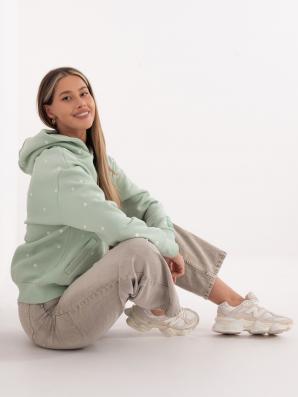 Pistáciově zelená zateplená mikina s kapsami a s kapucí