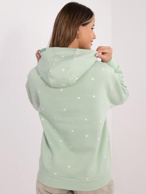 Pistáciově zelená zateplená mikina s kapsami a s kapucí