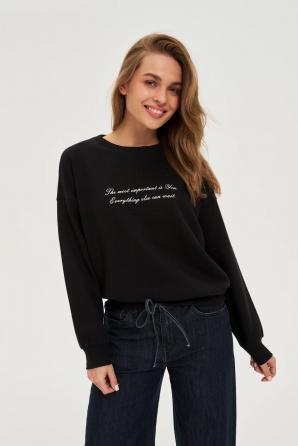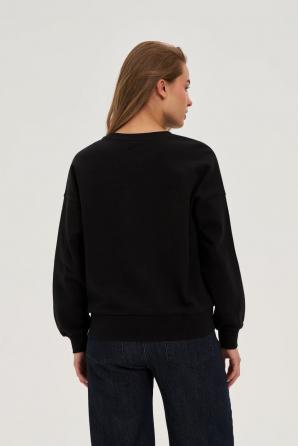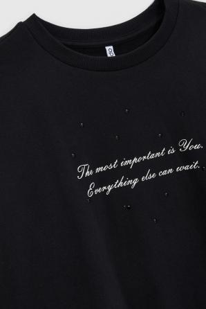 80% BAVLNA, 20% POLYESTER Tato dámská černá mikina s poutavým potiskem a výrazným nápisem dokonale podtrhne váš individuální styl. Dlouhé rukávy a klasický kulatý výstřih zajišťují pohodlné nošení po celý den. Svetrový střih bez kapuce zaručuje volnost pohybu a všestranný styling. Měkká bavlna s přídavkem syntetických vláken činí materiál příjemným na dotek a odolným. Je to ideální volba pro schůzky s přáteli, procházky městem nebo každodenní pracovní výlety. Dobře se hodí k džínům, ležérním kalhotám a sportovním sukním. Tato černá mikina s potiskem se skvěle hodí k teniskám, teniskám a módním kotníkovým botám a vytváří tak stylový městský vzhled.
