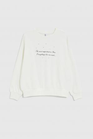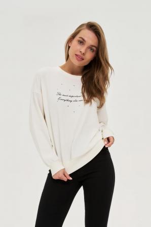80% BAVLNA, 20% POLYESTER Tato dámská ecru mikina zaujme svým módním potiskem a nápisy, které dodávají stylu jedinečný charakter. Dlouhé rukávy a klasický kulatý výstřih zajišťují pohodlí a volnost pohybu při každodenním nošení. Mikina bez kapuce je praktickou volbou do každého počasí. Měkké, přírodní bavlněné složení zaručuje prodyšnost a příjemný pocit na pokožce. Ideální pro neformální schůzky, procházky městem i víkendové pobyty. Perfektně se hodí k džínům, kalhotám nebo midi sukni. Skvělá volba pro ležérní outfity, a to jak pro každý den, tak i do práce v méně formálním prostředí.